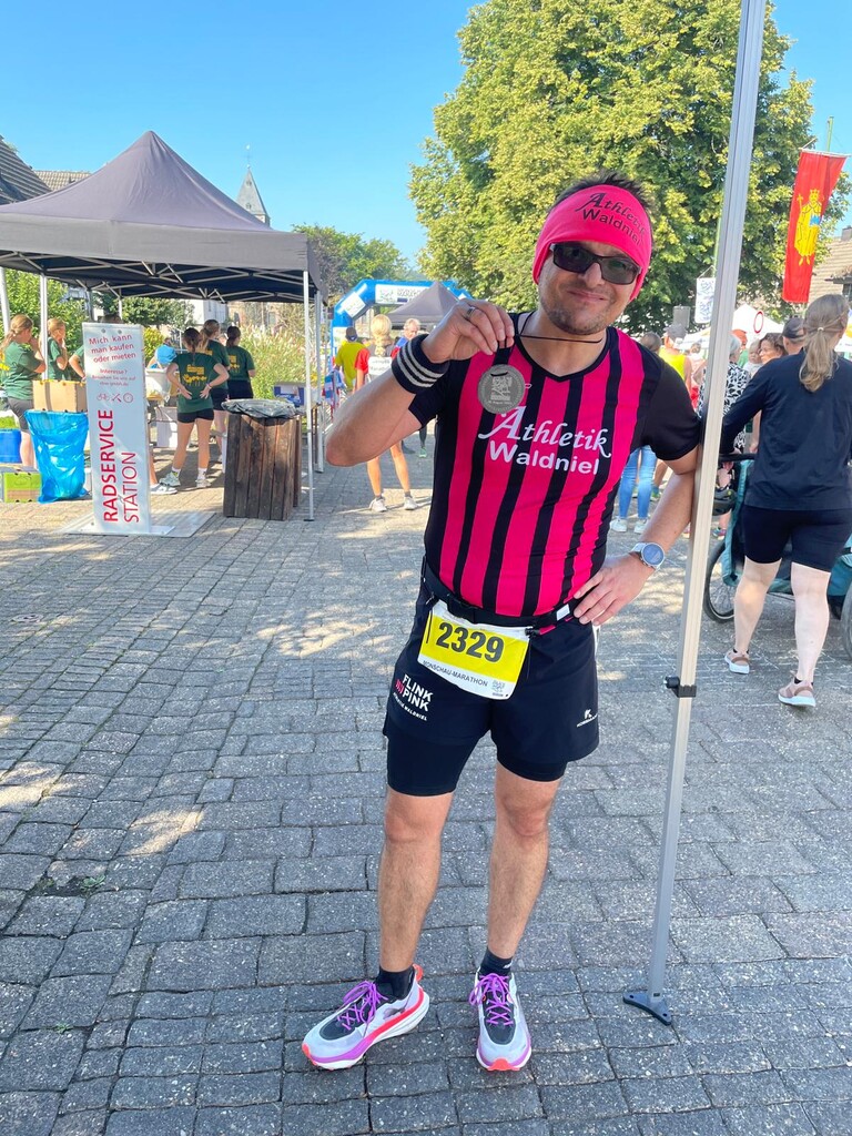 So haben sich Corinna, Andi (mit i, nicht c) und Bernadette für die 56k Distanz entschieden, während Frank und Alex sich dem Genuss der 42k in den frühen Morgenstunden widmeten. Viele bekannte Gesichter haben sie dort getroffen, unsere Freunde der TuRa Brüggen und natürlich warne auch die pinken Kaarster am Start. Ein toller Sonntag bei super Wetter!